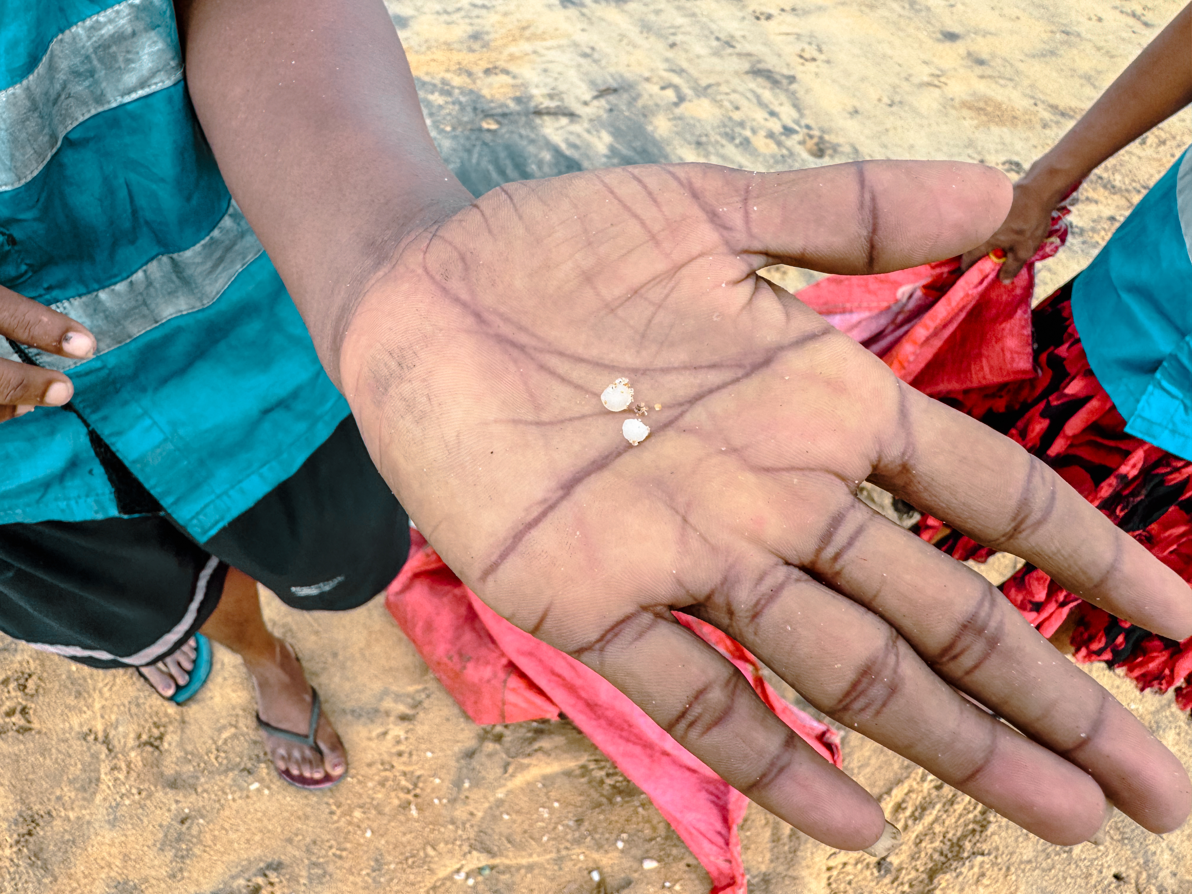 Women collecting nurdles in Sarakkuwa note the whiteness and freshness of new pellets washing up since May, distinct from the older, brownish ones.