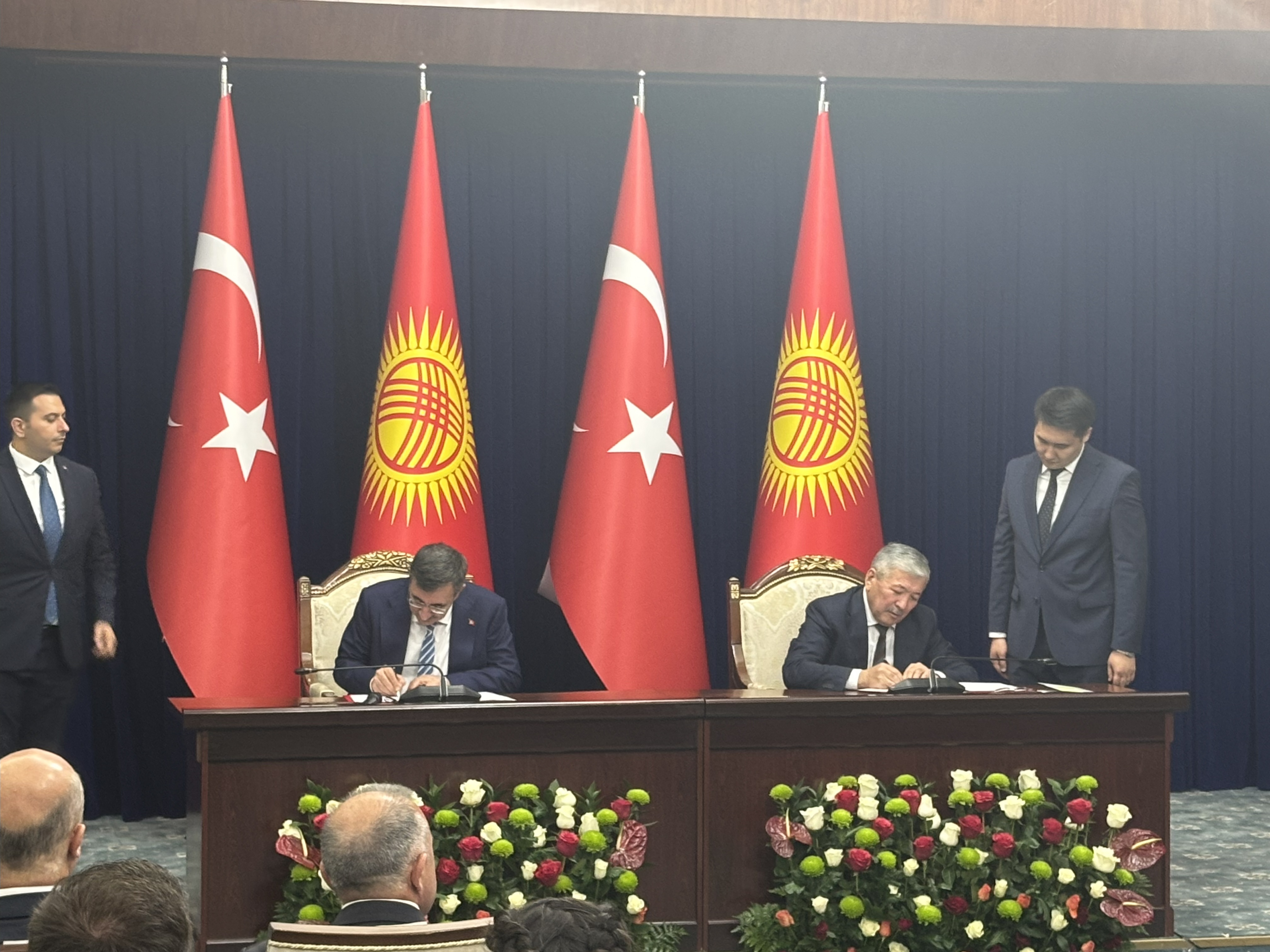 The Vice President of Turkiye, Cevdet Yılmaz, and the Chairman of Kyrgyzstan’s Cabinet of Ministers, Adylbek Kasymaliev, meet in Bishkek. Photo by Joe Luc Barnes.