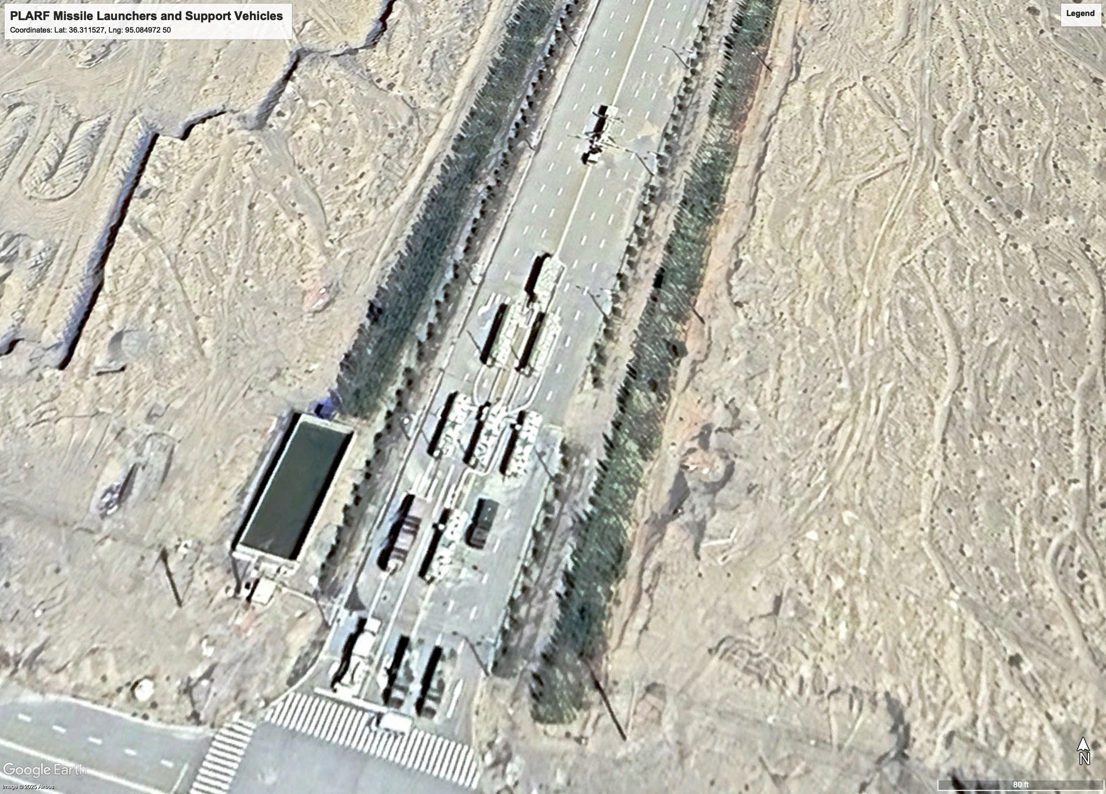 PLARF missile launchers and support vehicles seen near the Golmud site. Source: Google Earth.
