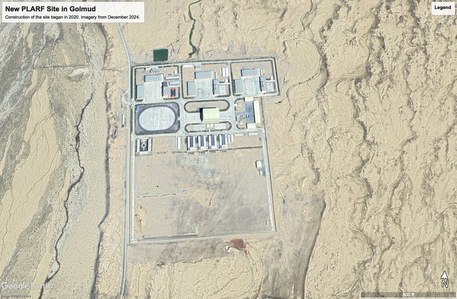 A PLARF-linked site near Golmud city. Construction of the site began in 2020. Source: Google Earth.